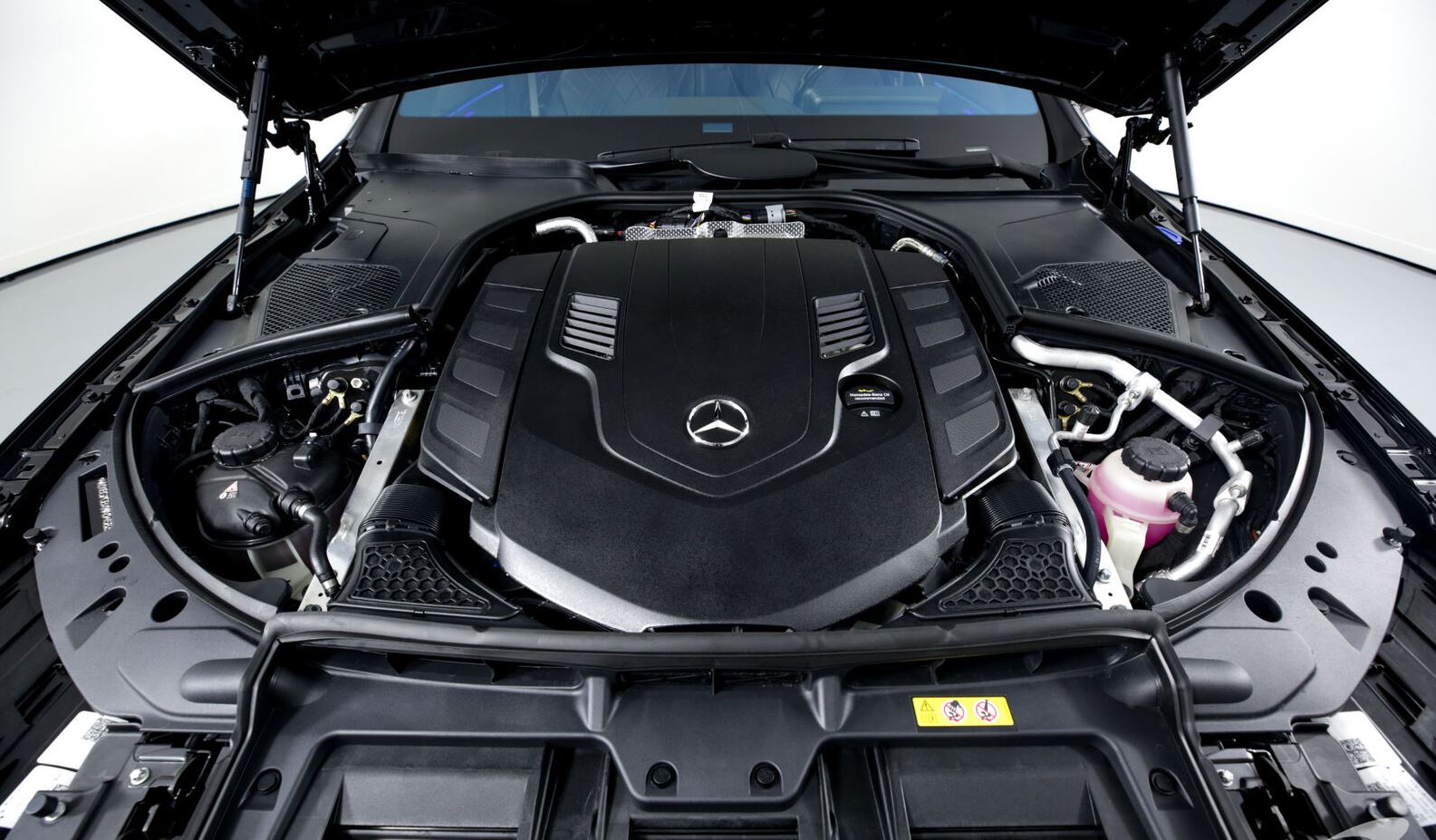 The 2021 Mercedes S-Class comes in two engine choices both paired to a nine-speed automatic and AWD. The S 580 4Matic offers a V8 twin-turbocharged 4.0-liter engine for 496 hp and 516 lbs-ft. The S 500 4Matic is powered by a turbocharged 3.0-liter six-cylinder engine that pushes 429 hp and 384 lbs-ft of torque.