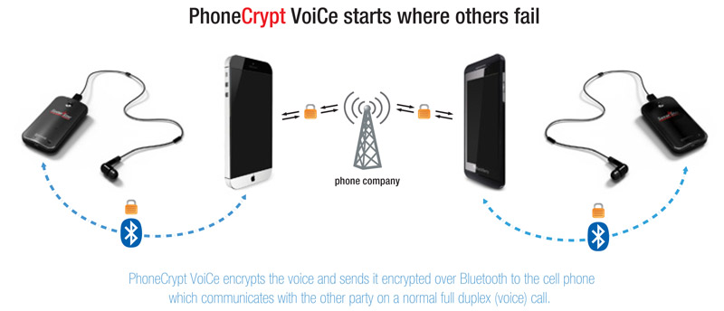 Unlike most voice encryption solutions, PhoneCrypt VoiCe is a unique, innovative technology able to provide the highest security voice encryption to mobile phones using the normal voice channel rather than requiring a data/internet channel. PhoneCrypt VoiCe encrypts the voice digitally and then transports the encrypted information over the analog voice channel of the phone. PhoneCrypt VoiCe can be used anywhere in the world, even where all other digital solutions fail. Even more, PhoneCrypt VoiCe works with any mobile phone on the market (even the lowest-end models) regardless of the brand or model, as long as they have Bluetooth functionality.